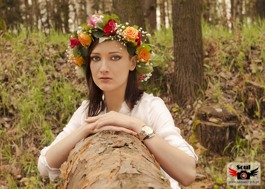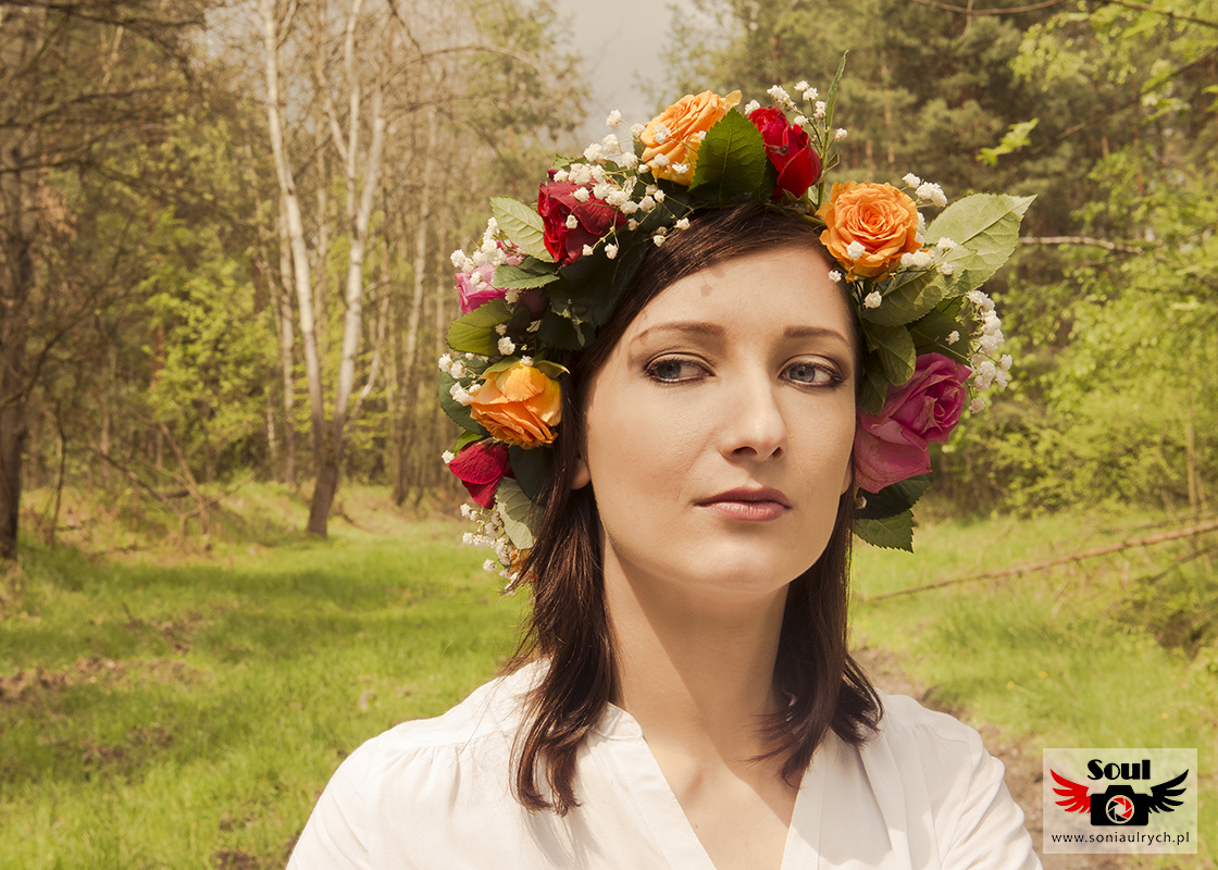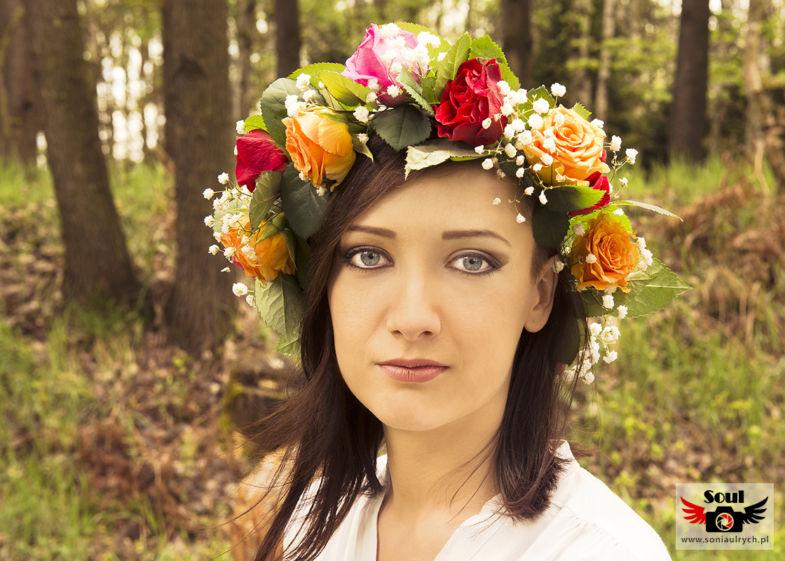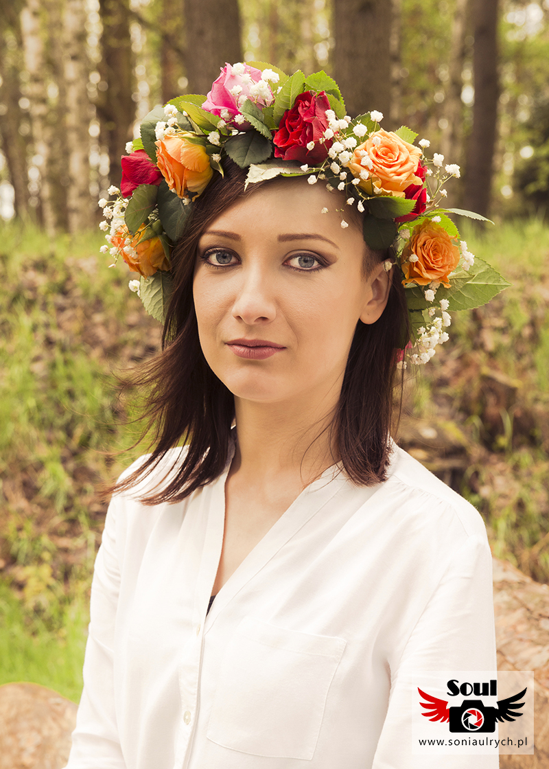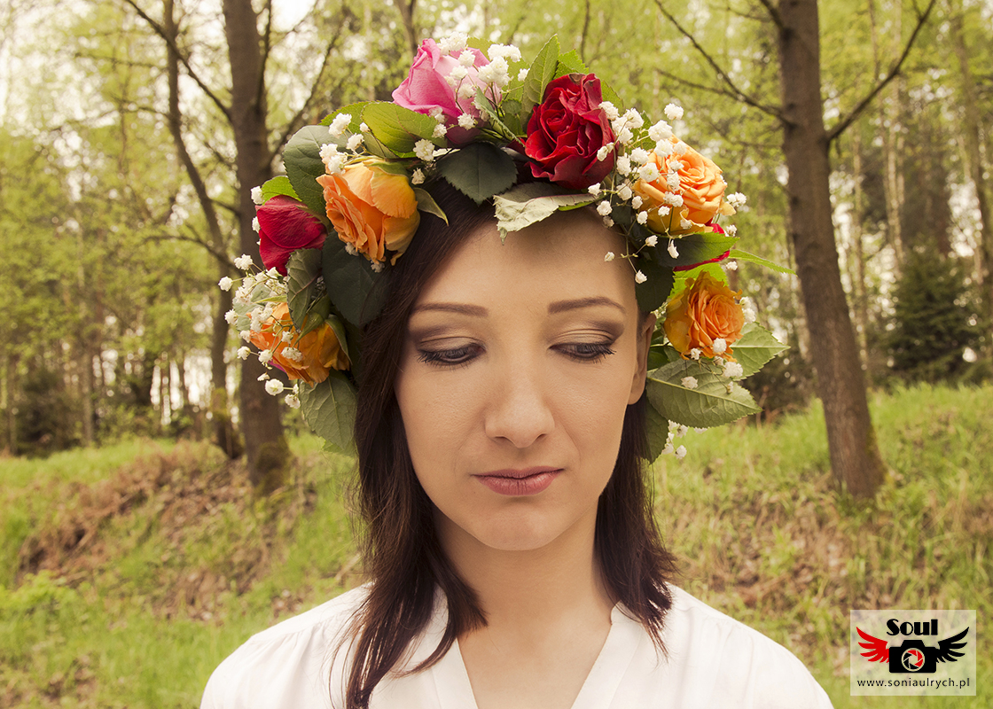 Razem postanowiłyśmy, że idealny będzie wianek zrobiony z prawdziwych kolorowych kwiatów, sceneria lasu i łąki.