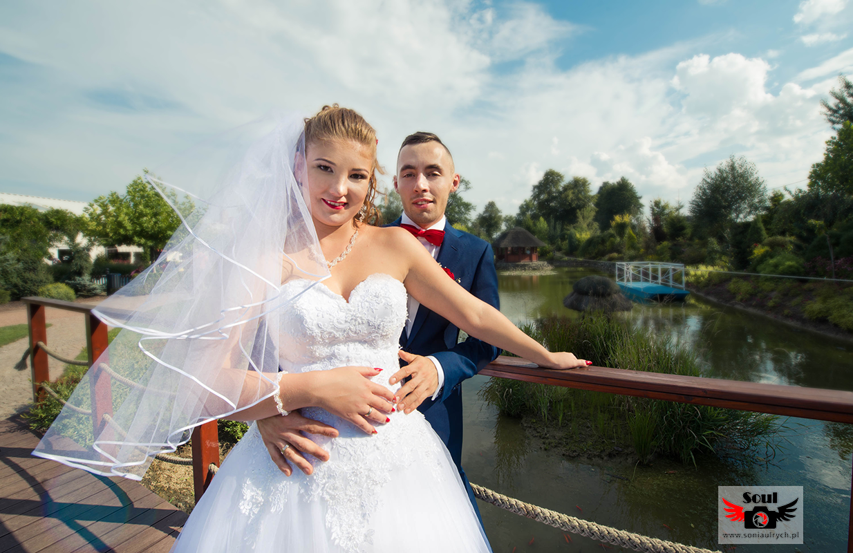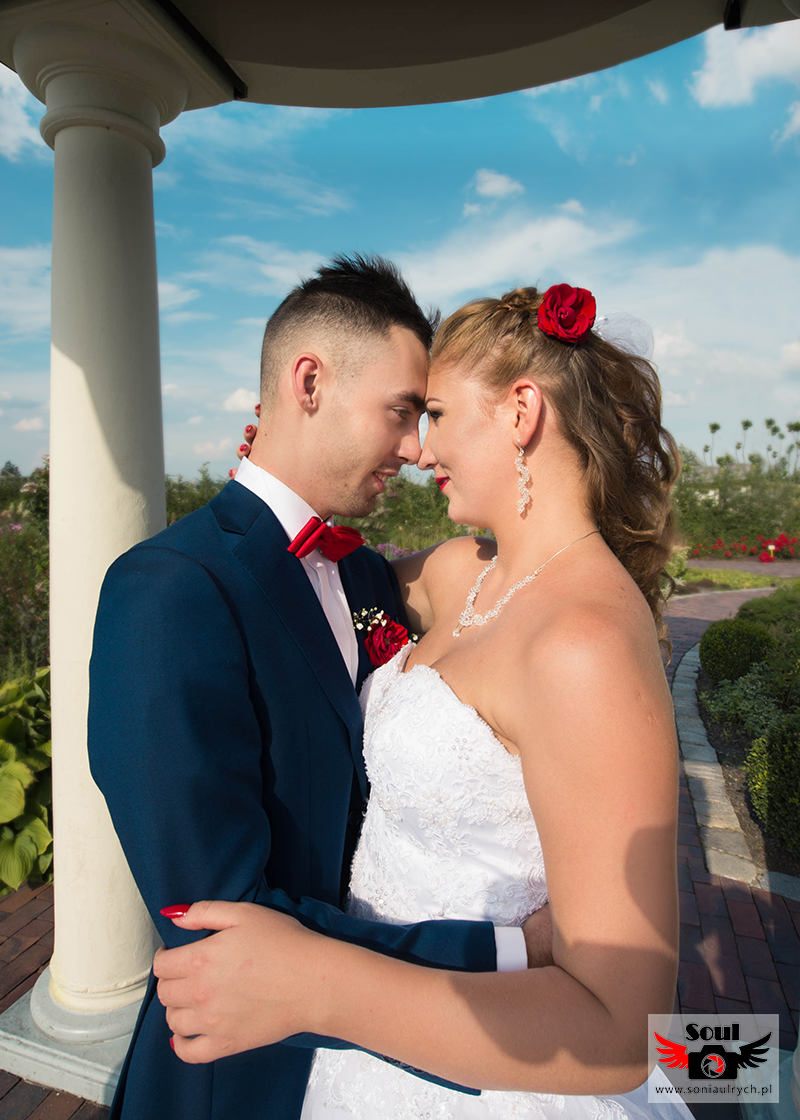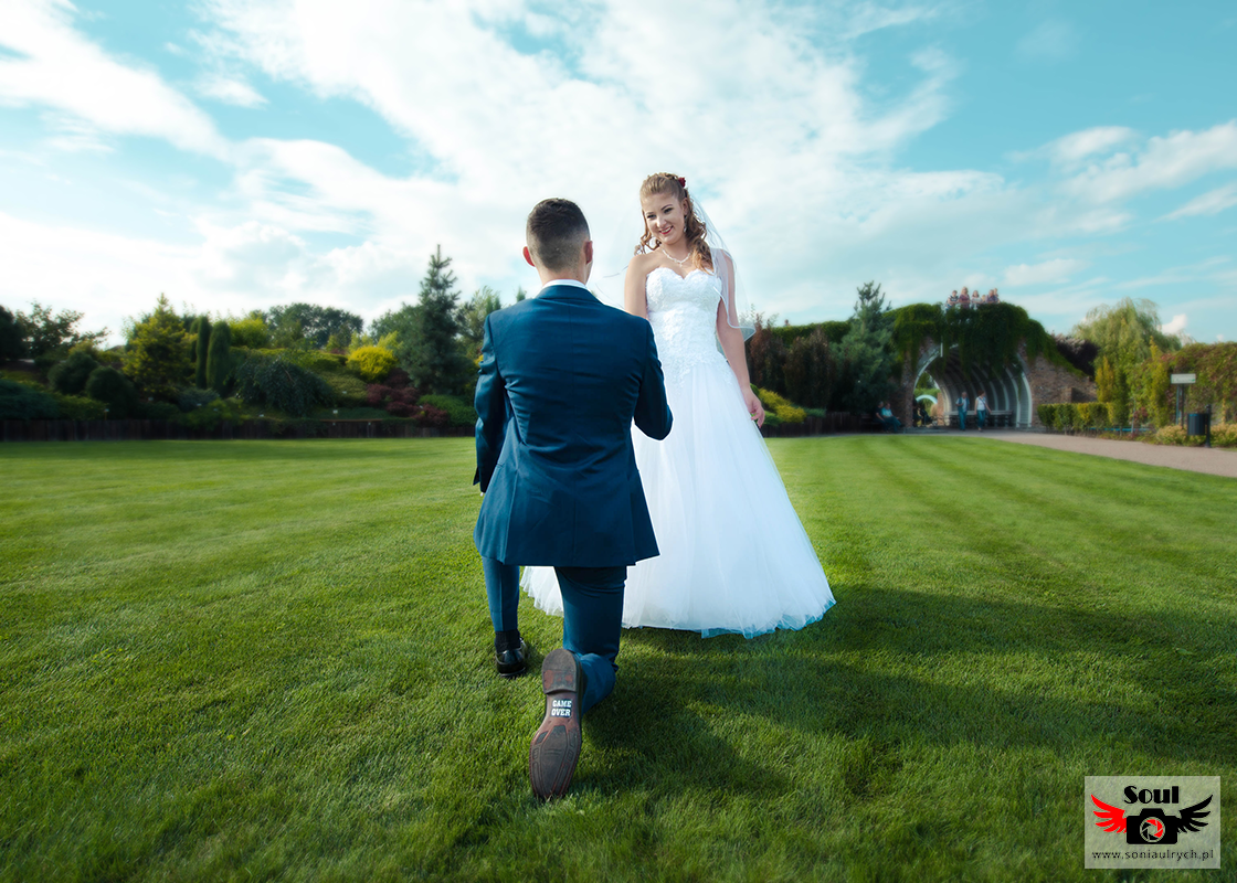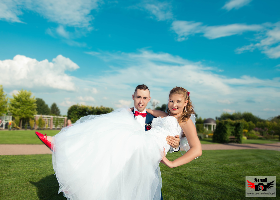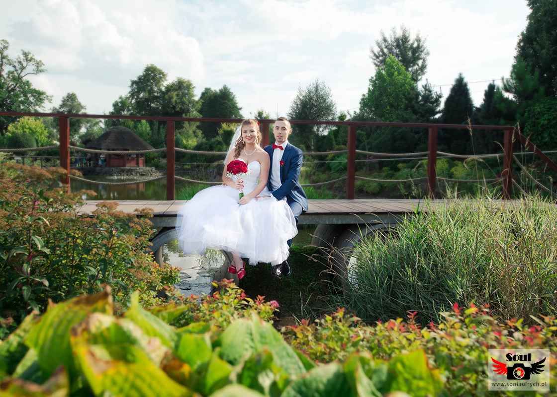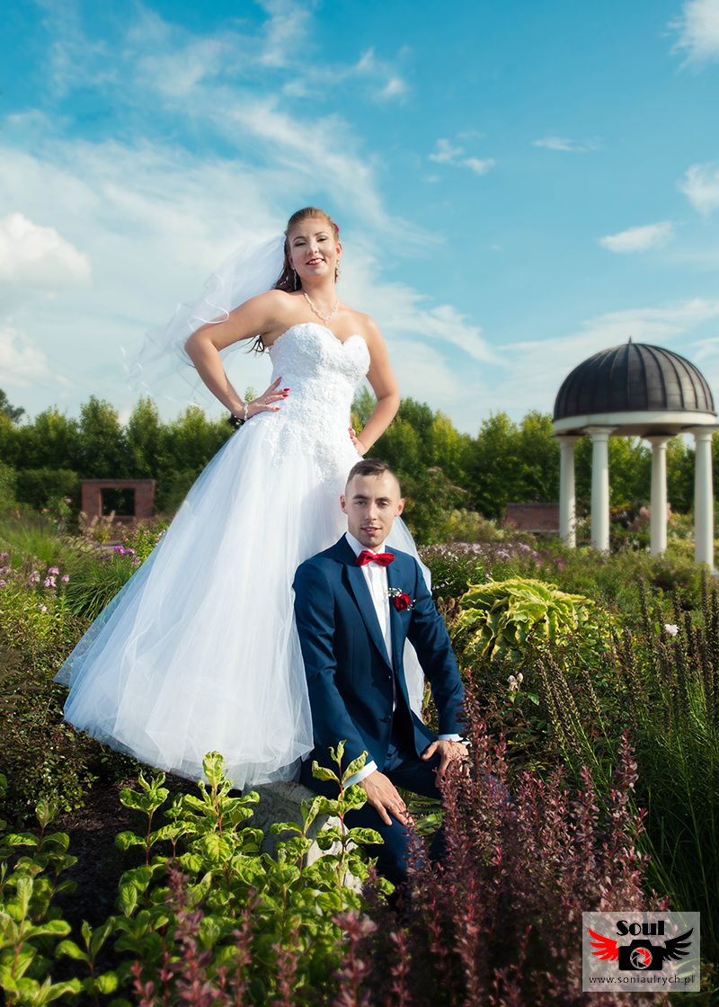 Na plener Dagmary i Łukasza wybraliśmy się w dniu ślubu do Ogrodów Kapias w Goczałkowicach. W tym dniu było bardzo gorąco, a słońce nie pozwalało o sobie zapomnieć. Zdjęcia zrobiliśmy w miarę szybko, ponieważ Dagmara i Łukasz nie chcieli długo zostawiać samych swoich gości. Po 2 godzinach spoglądania na zegarek wróciliśmy na wesele. Mimo wszystko spisali się rewelacyjnie!