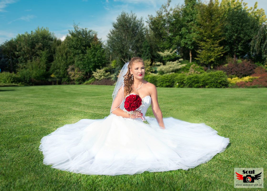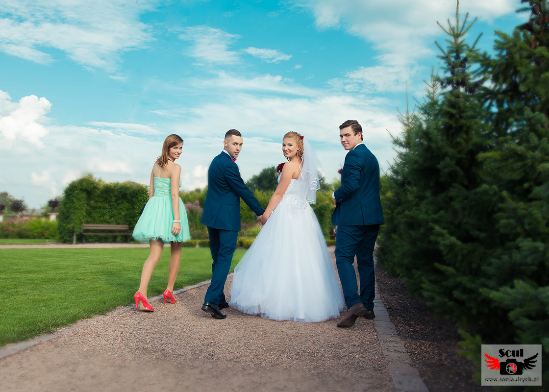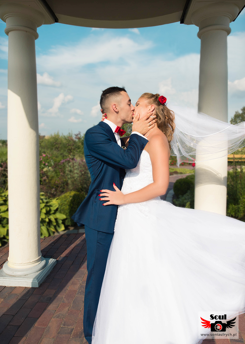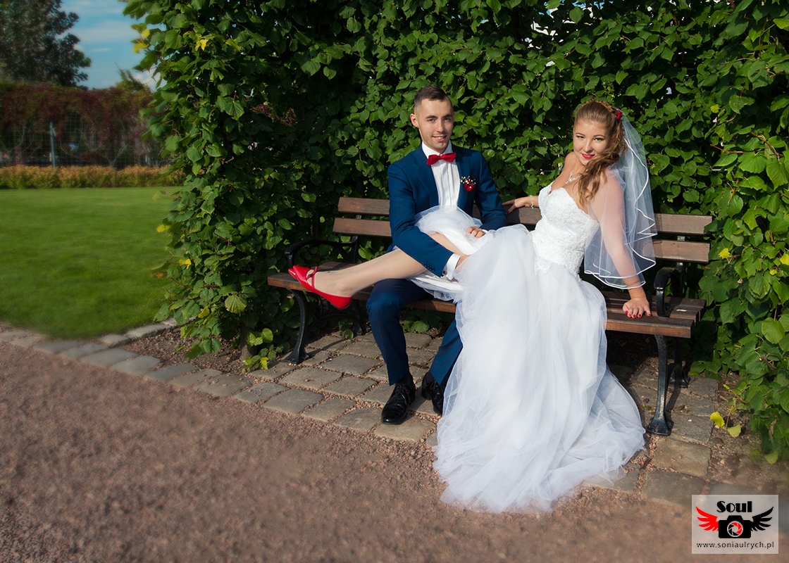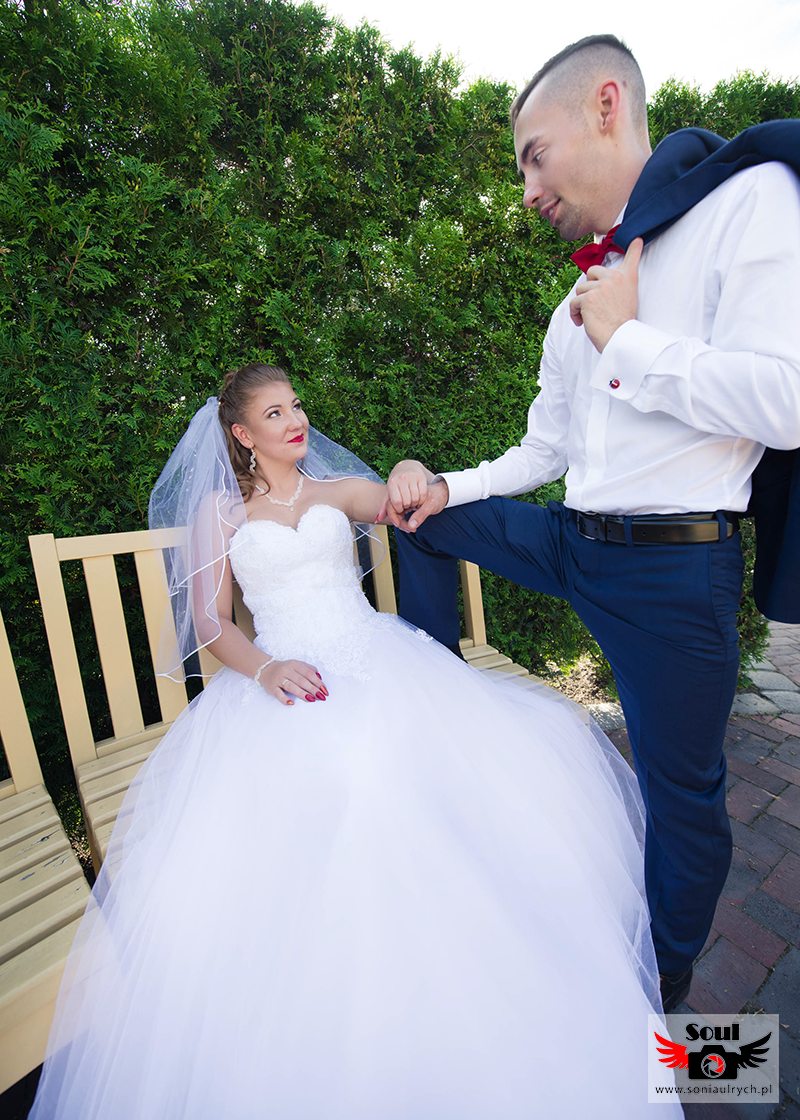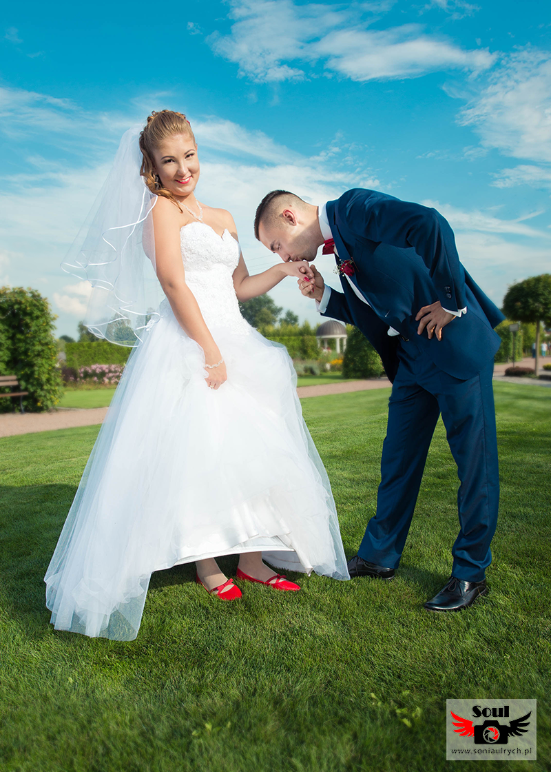 Na plener Dagmary i Łukasza wybraliśmy się w dniu ślubu do Ogrodów Kapias w Goczałkowicach. W tym dniu było bardzo gorąco, a słońce nie pozwalało o sobie zapomnieć. Zdjęcia zrobiliśmy w miarę szybko, ponieważ Dagmara i Łukasz nie chcieli długo zostawiać samych swoich gości. Po 2 godzinach spoglądania na zegarek wróciliśmy na wesele. Mimo wszystko spisali się rewelacyjnie!