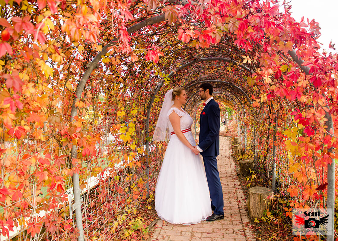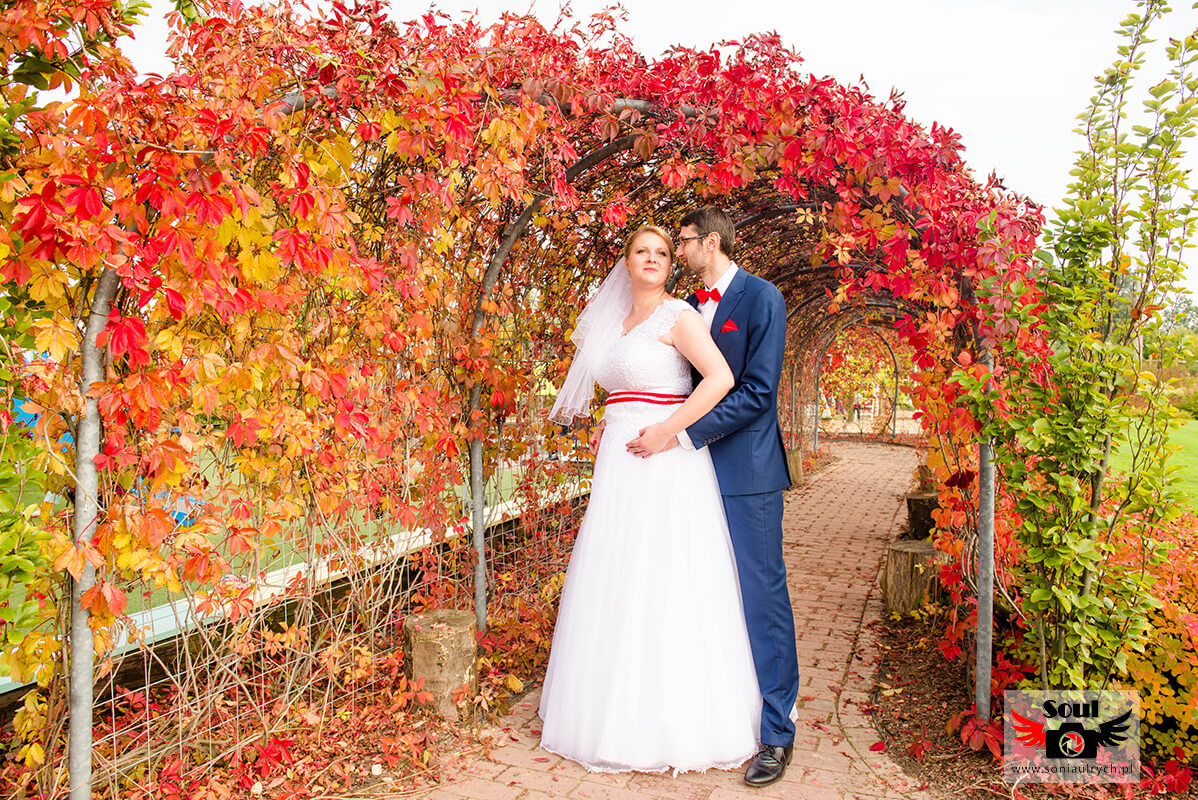 Na plener z Dorota i Mariuszem długo nie mogliśmy się umówić. Pogoda odmawiała nam współpracy gdyż cały czas po ich weselu padało i było zimno. Miesiąc później udało się. Pewnego sobotniego popołudnia pogoda stała się dla nas łaskawa. Uśmiechano się do nas słońce. Pomysłów było wiele, ale ostatecznie zdecydowali się na realizacje pleneru w Goczałkowicach – Zdrój w Ogrodach Kopias. Okazało się ze, na ten sam pomysł wpadło kilka innych par. Spotkaliśmy około 5 innych Młodych Par. Atmosfera sesji była mocno jesienna, klimatyczna i oryginalna. Dorota i Mariusz świetnie sobie radzili przed obiektywem, mimo to, że nie bardzo lubią być fotografowani. Co tu więcej pisać. Efekty sesji plenerowej zobaczcie poniżej sami.